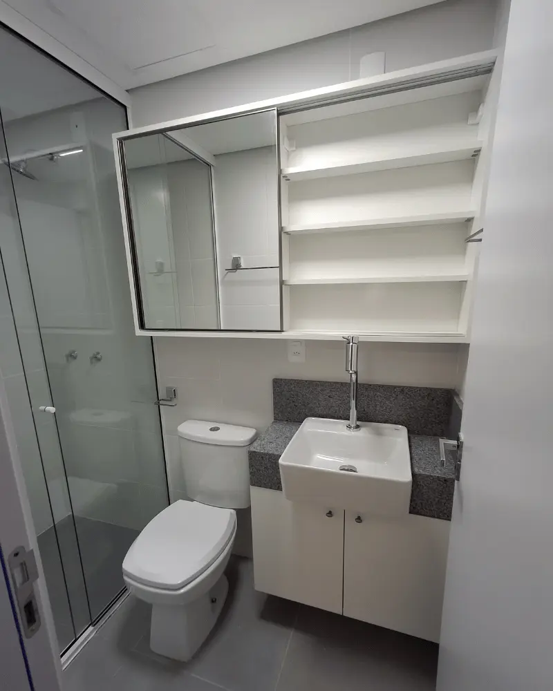 Imagens de dormitório e banheiro para apartamento no Smart Urban – Porto5, em Pelotas/RS